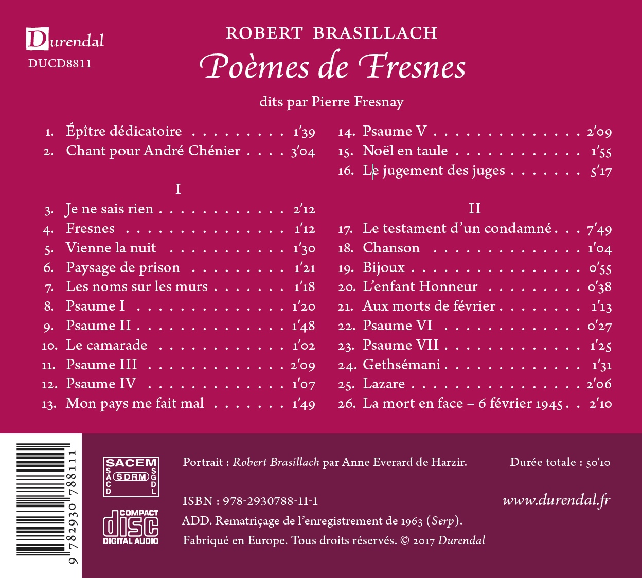 C’est dans cet acte tout simple (et combien héroïque !) que s’achève cette montée spirituelle que l’auditeur vit avec Brasillach. Au cours de cette montée, comme pour la ponctuer, ce sont des merveilles très variées que l’âme et la voix nous livrent : on pense en particulier à Vienne la nuit, ou au Jugement des juges, ou encore à Gethsémani. Parce que l’ascension de son âme est véritable et du meilleur aloi, Brasillach nous apparaît profondément humain : épris de la vie, affamé d’amitié, fier de loyauté. En raison de cette tendresse qui demeure au sein d’un courage jamais démenti, nous le sentons très proche de nous et sommes portés à trouver en lui un aîné fraternel et exemplaire. L’écoute de ces poèmes est un grand moment d’admiration, de contemplation, de recueillement même, qui laisse au cœur qui dépasse l’injustice du jour de la terre un parfum de la paix d’ailleurs.